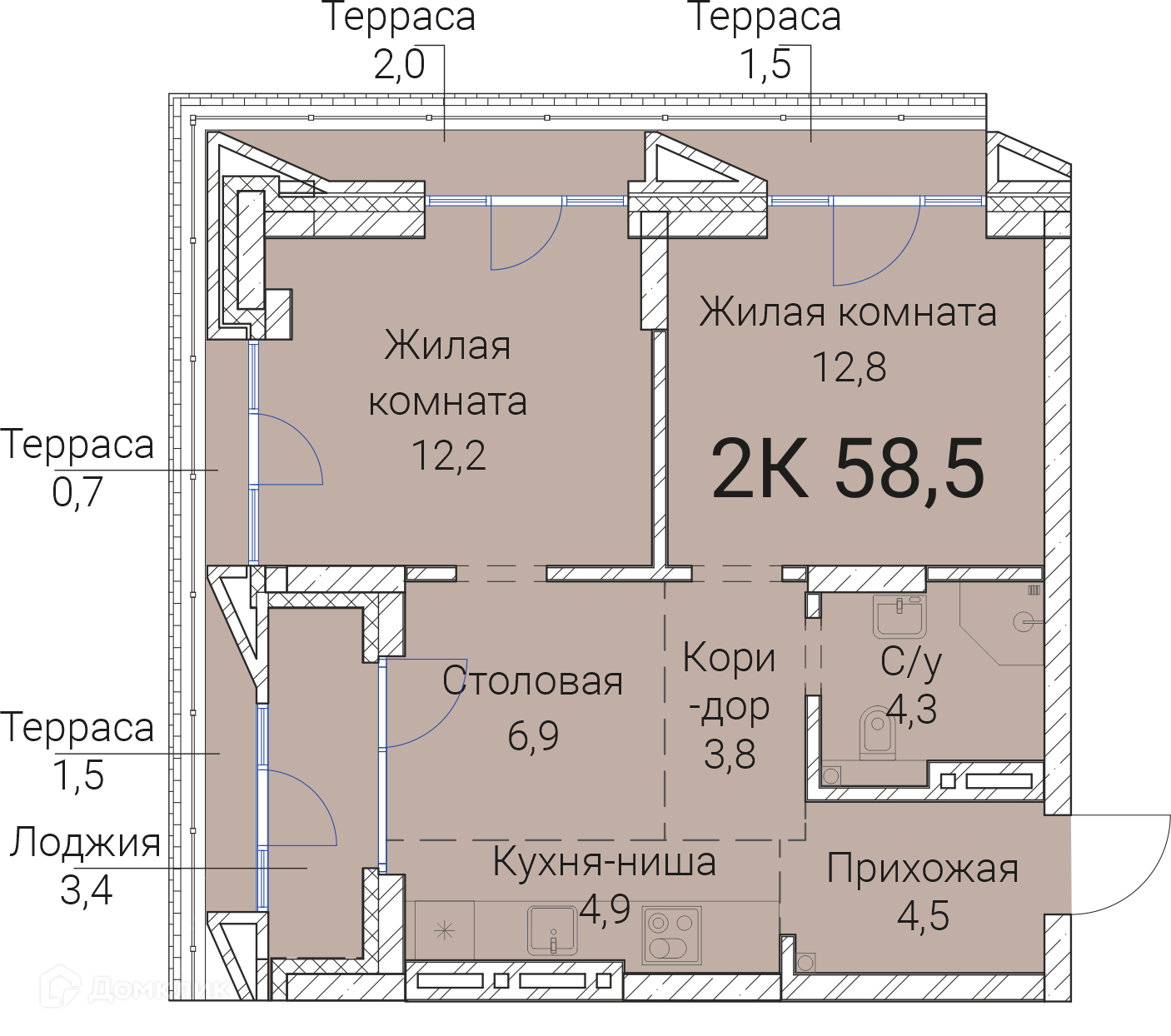 - ✅ Общая площадь: 58.5 м².