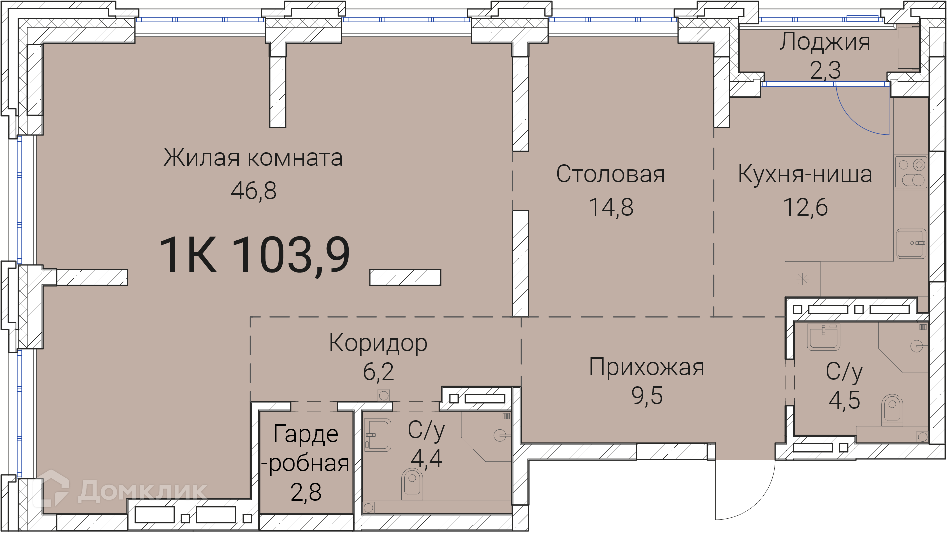 - Общая площадь: 103.9 м²