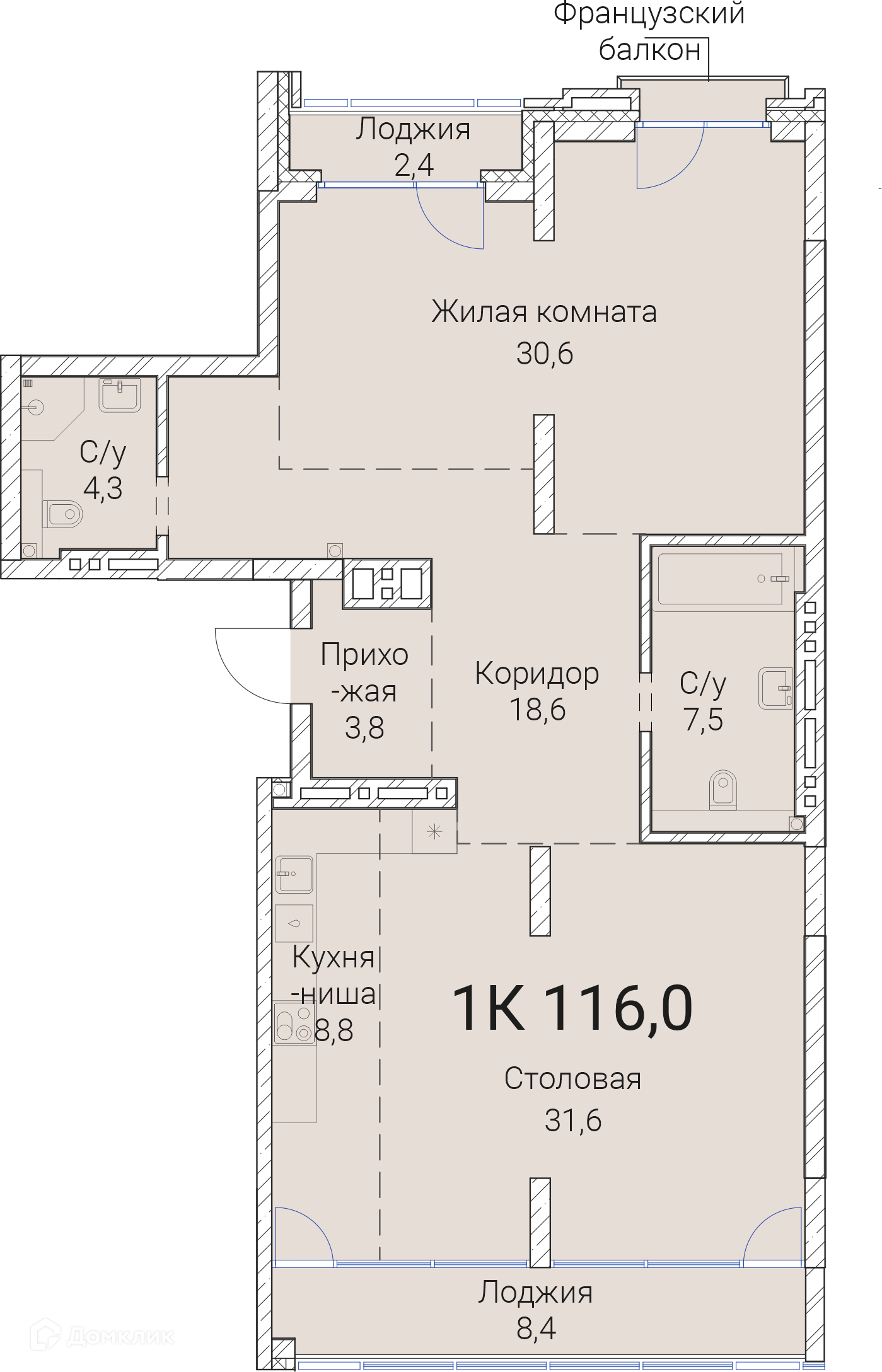 - ✅ Общая площадь: 116 м².