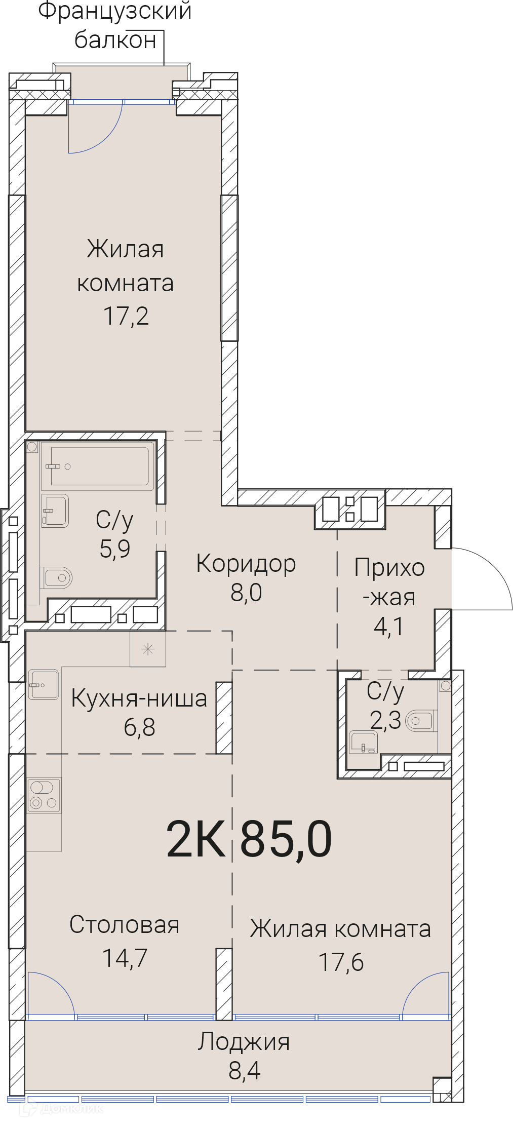 - Общая площадь: 85 м²