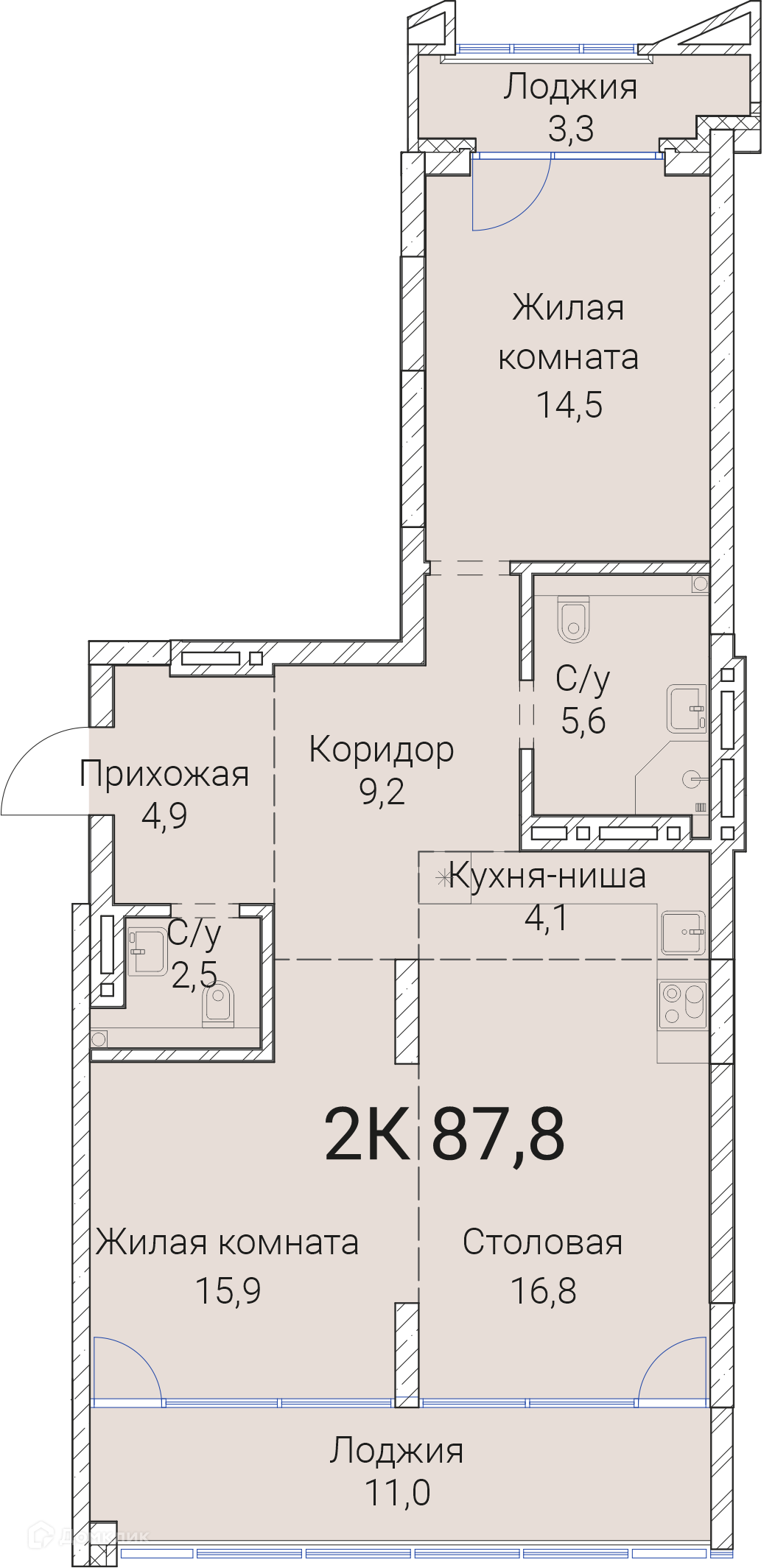 - Общая площадь: 87.8 м²