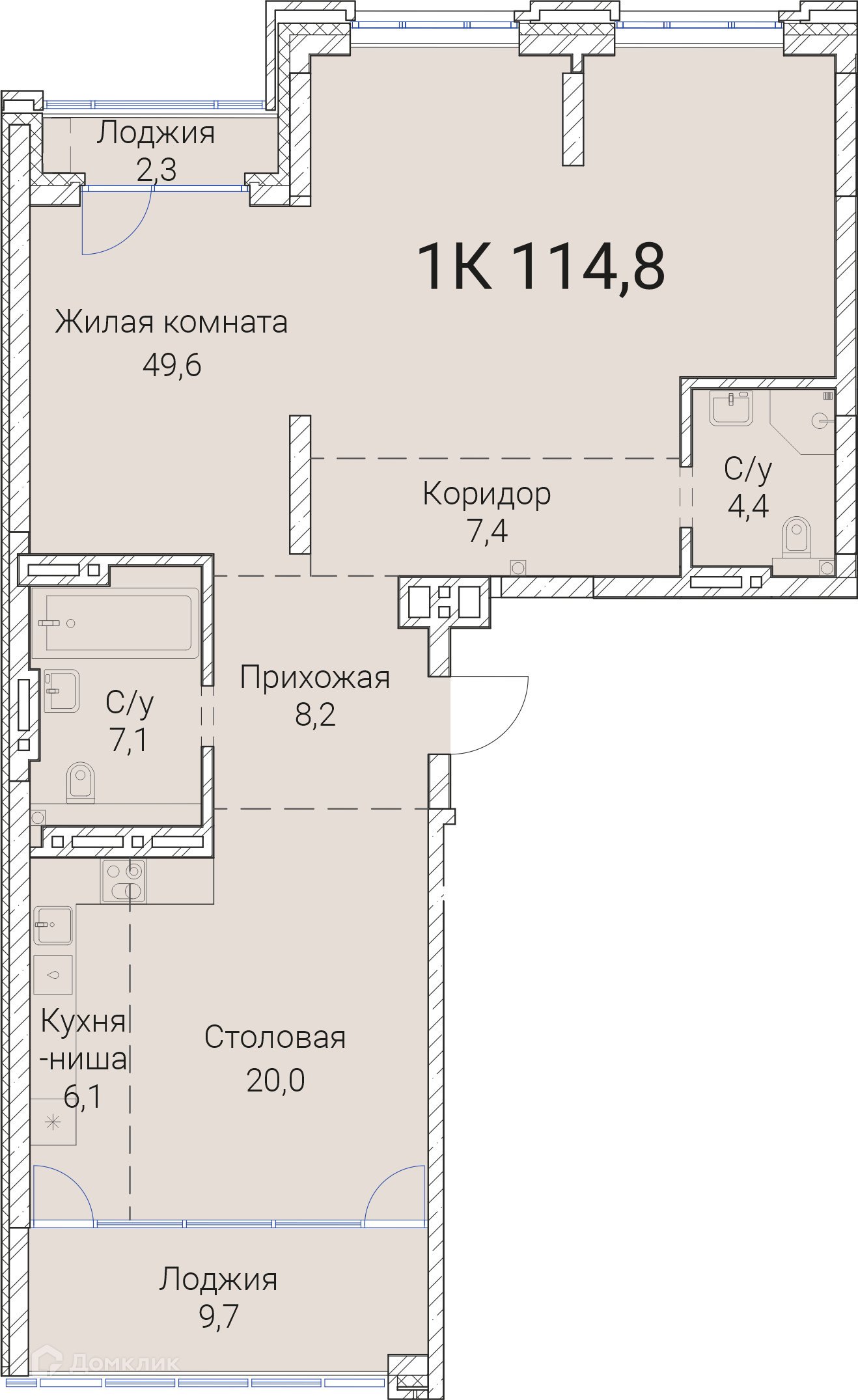 - ✅ Общая площадь: 114.8 м².
