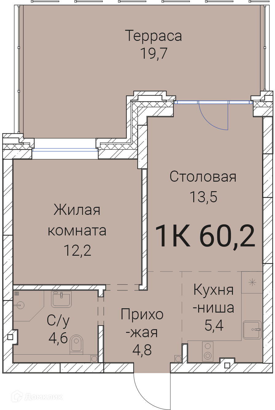 - Общая площадь: 60.2 м²