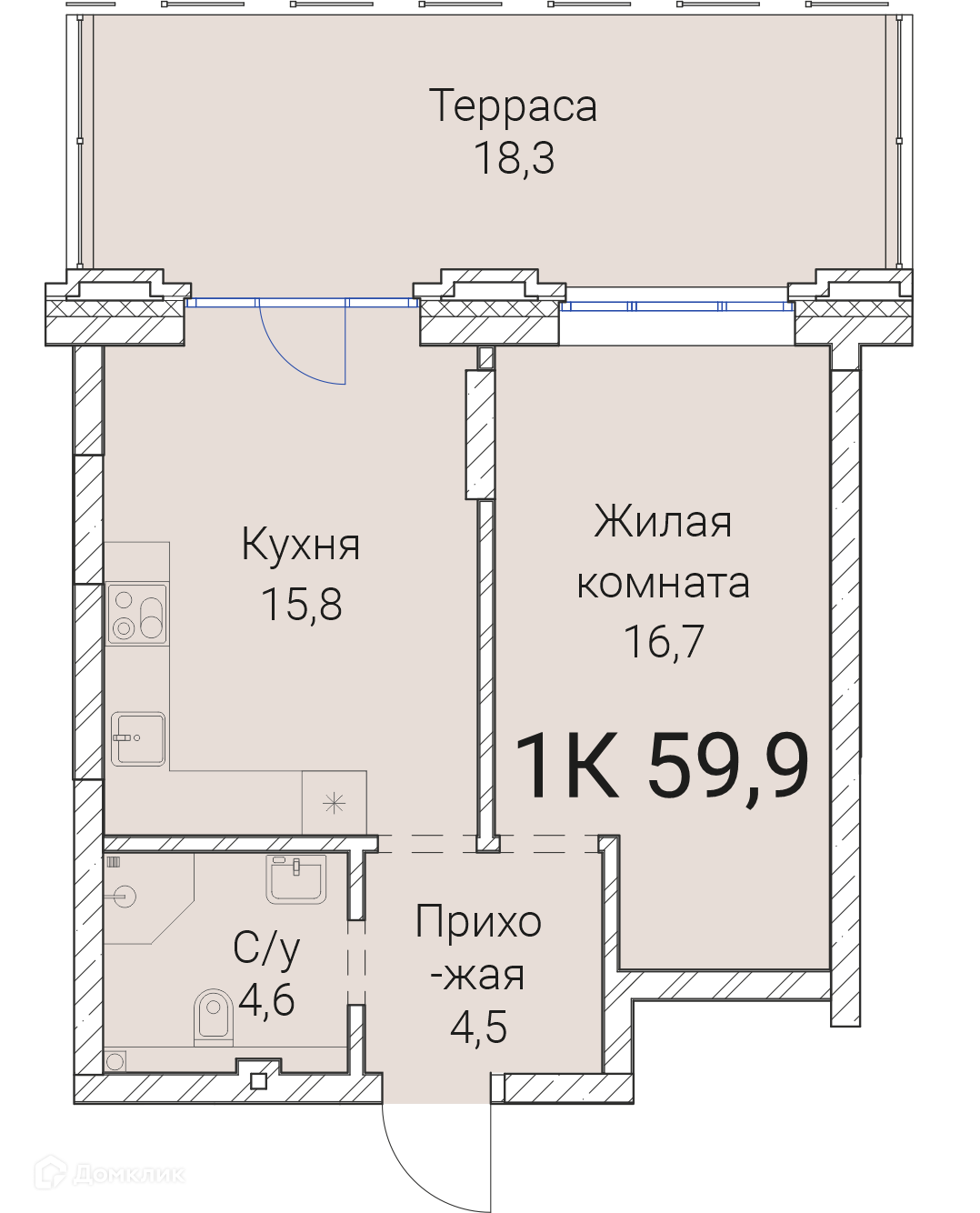 - ✅ Общая площадь: 59.9 м².