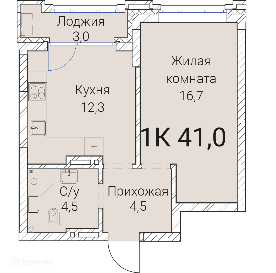 - ✅ Общая площадь: 41 м².