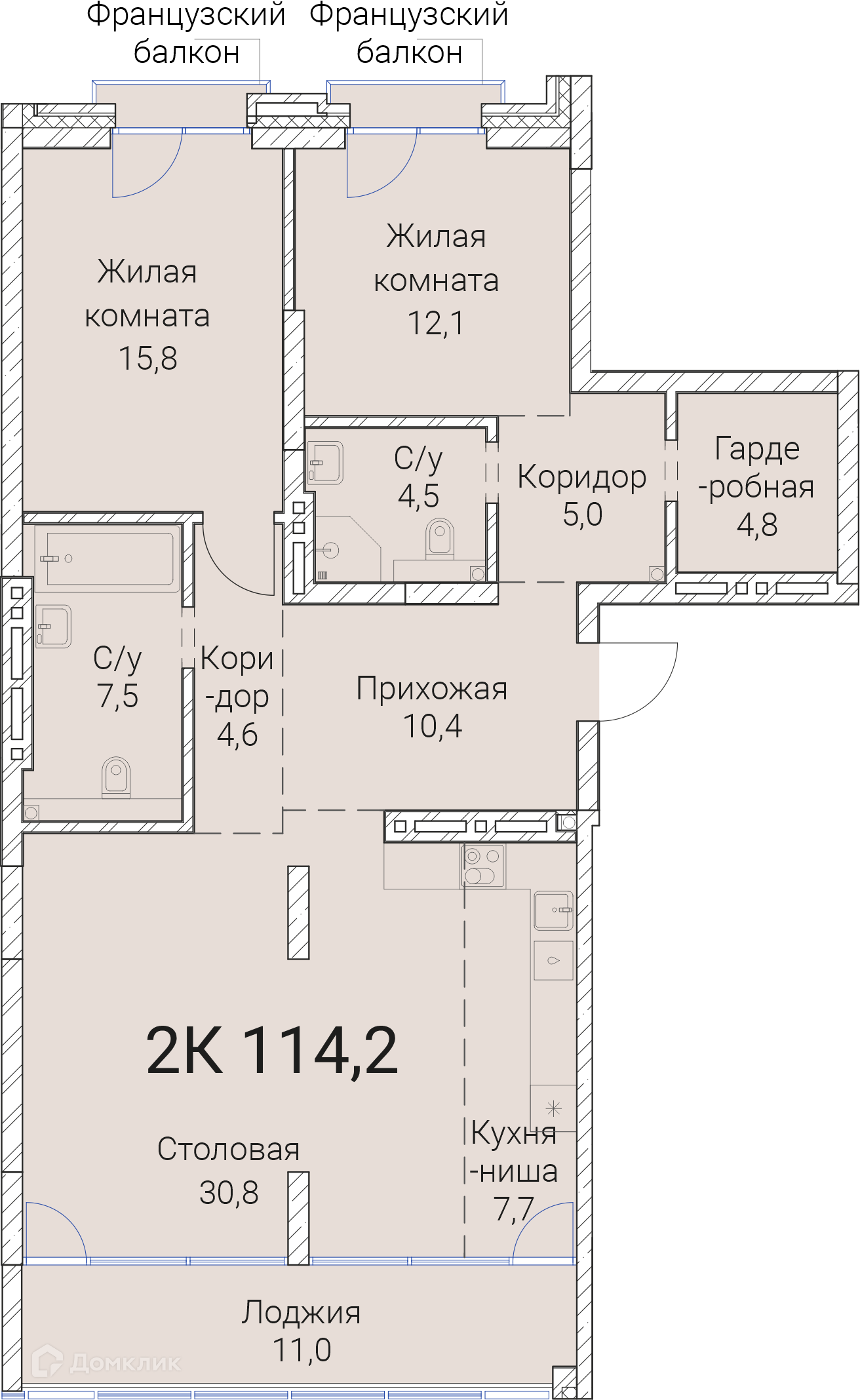 - ✅ Кухня: 0 м² — эргономичное пространство.