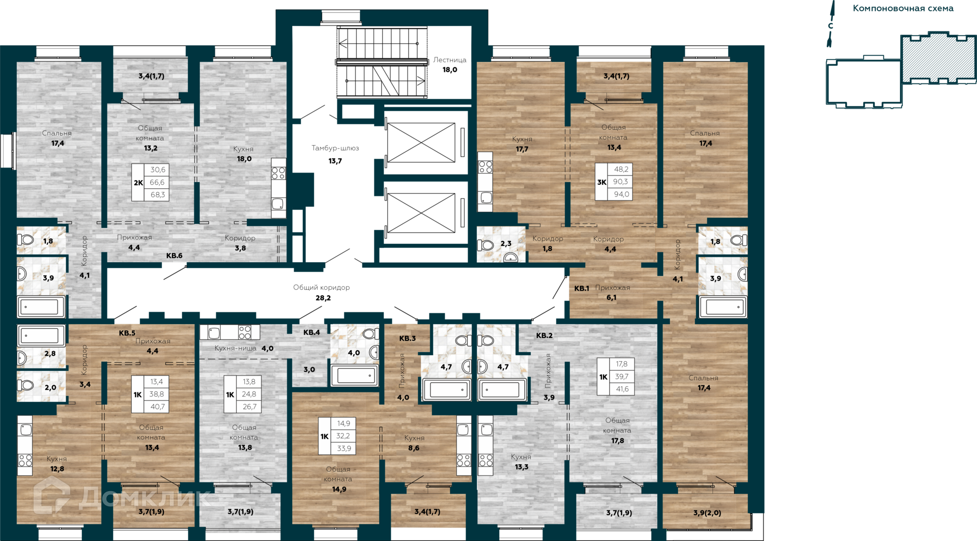 40.5 - 94 м²