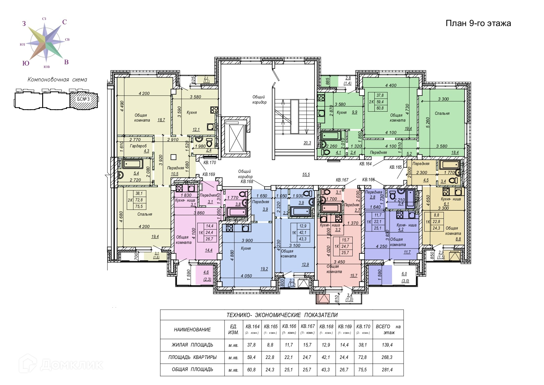 Площади квартир