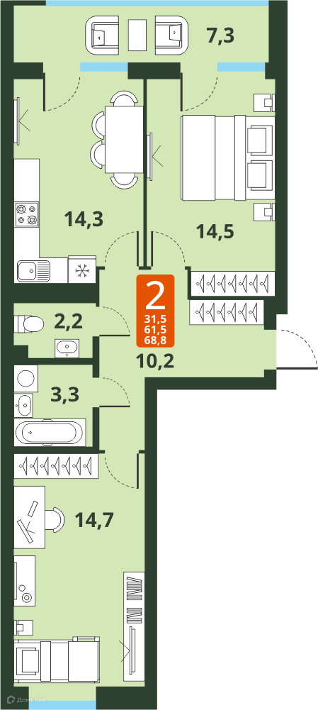 Предлагается 2-комнатная квартира в современном жилом комплексе "ЖК Тайгинский парк" 🏢. Квартира расположена на 13-м этаже 18-этажного дома. Прекрасный выбор для инвестиций.
