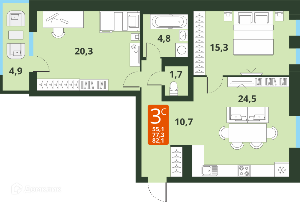 Планировка 3 комн. в ЖК Тайгинский парк