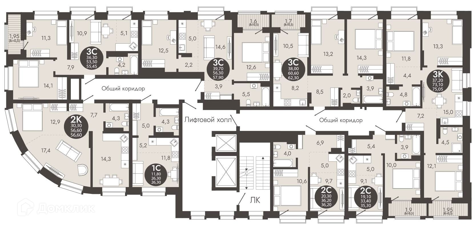 Площади квартир
