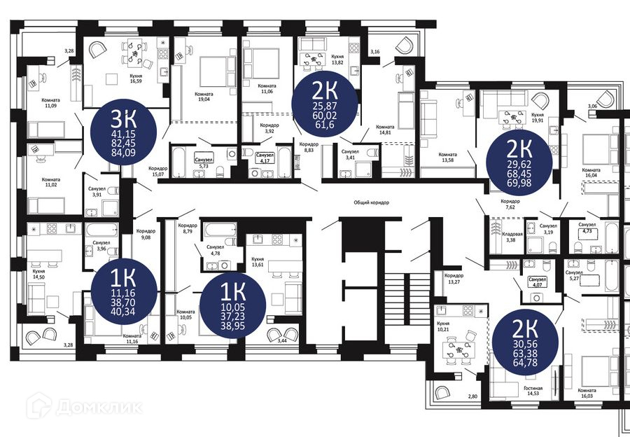 Площади квартир