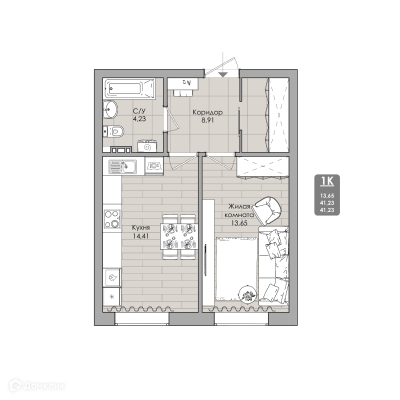 ✅ Кухня: 14.41 м² — место для кулинарных шедевров.