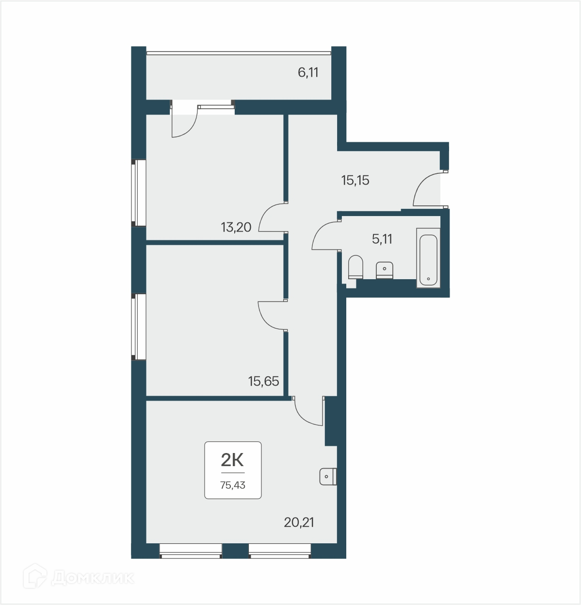 Планировка 2 комн. в ЖК Тайм Парк Апартаменты