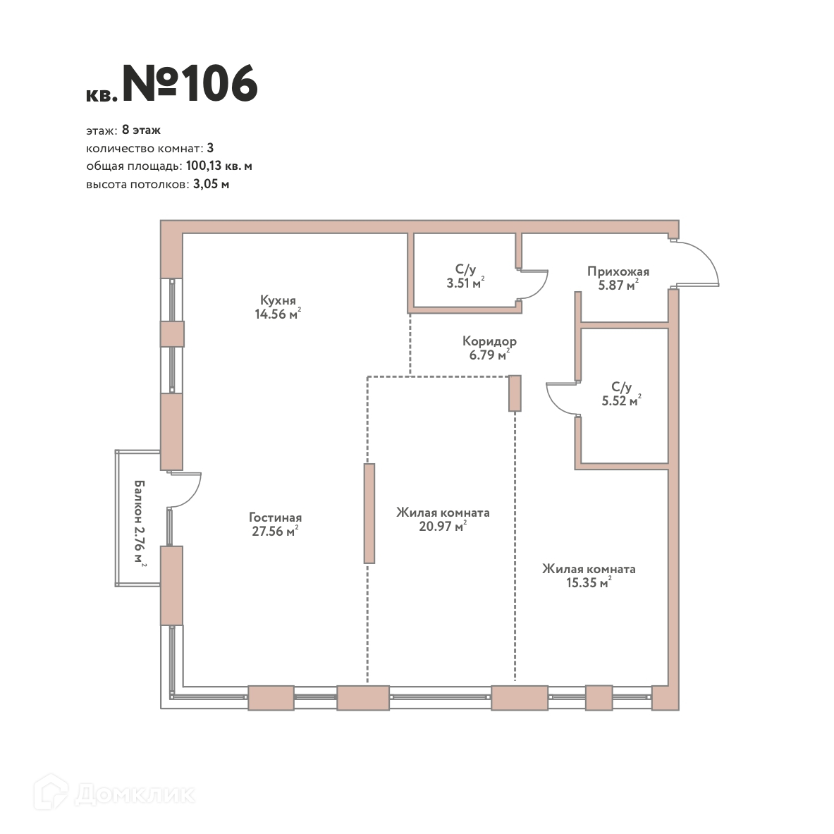 Описание квартиры в "ЖК "Эко-квартал Flora&Fauna (Эко-квартал Флора и Фауна)""