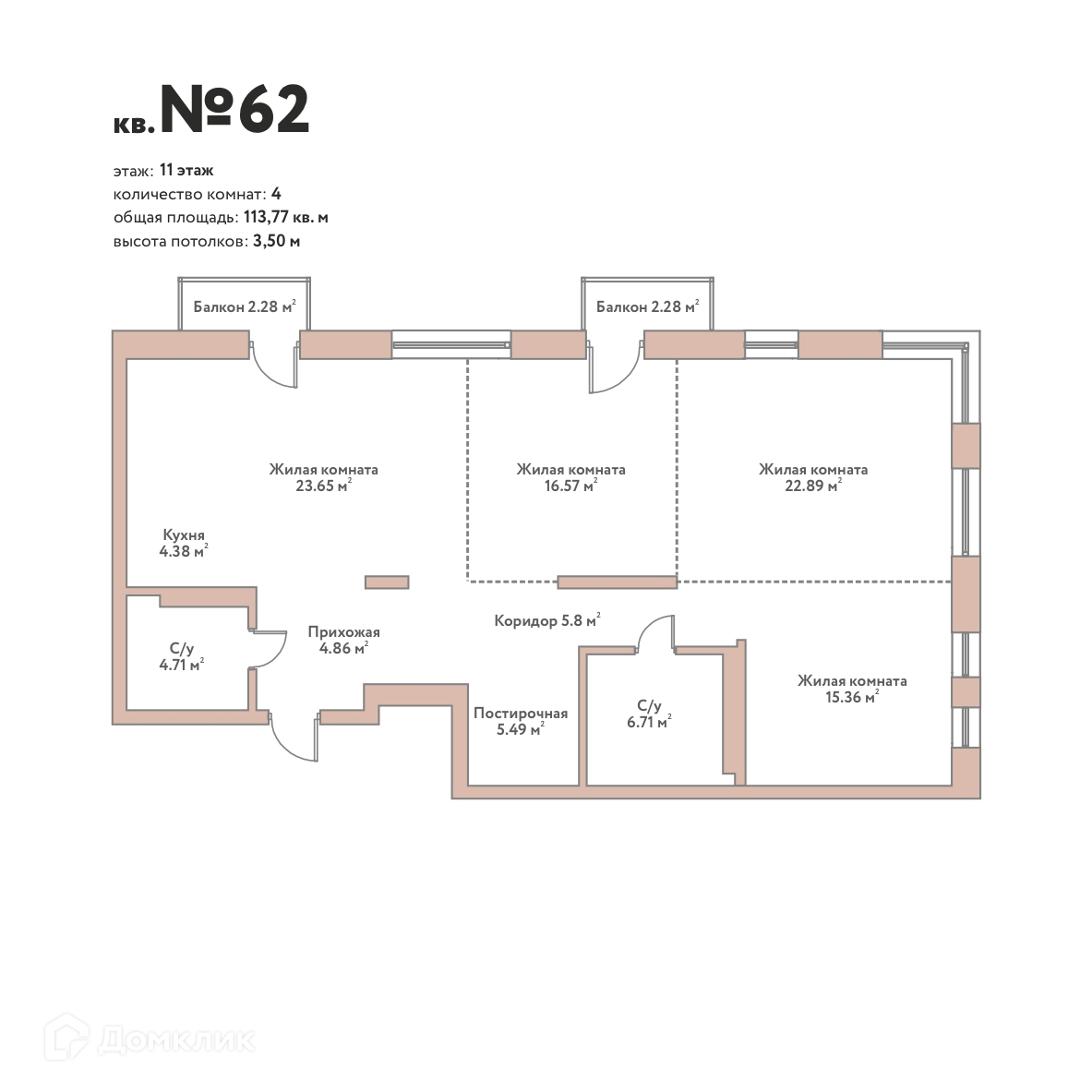 - Общая площадь: 113.77 м²