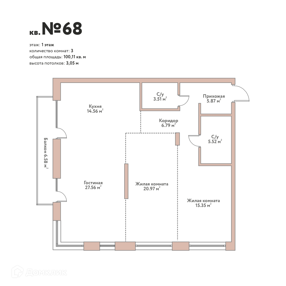 Описание квартиры в "ЖК "Эко-квартал Flora&Fauna (Эко-квартал Флора и Фауна)""