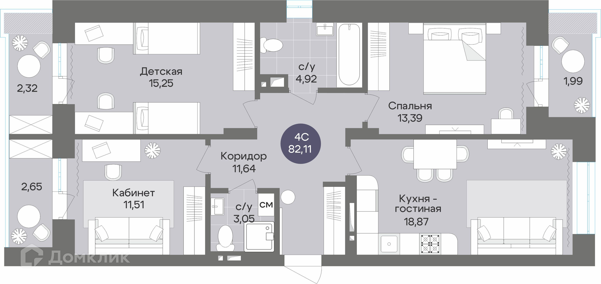 - Общая площадь: 82.11 м²