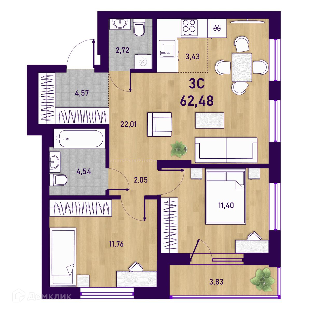 Площади квартир
