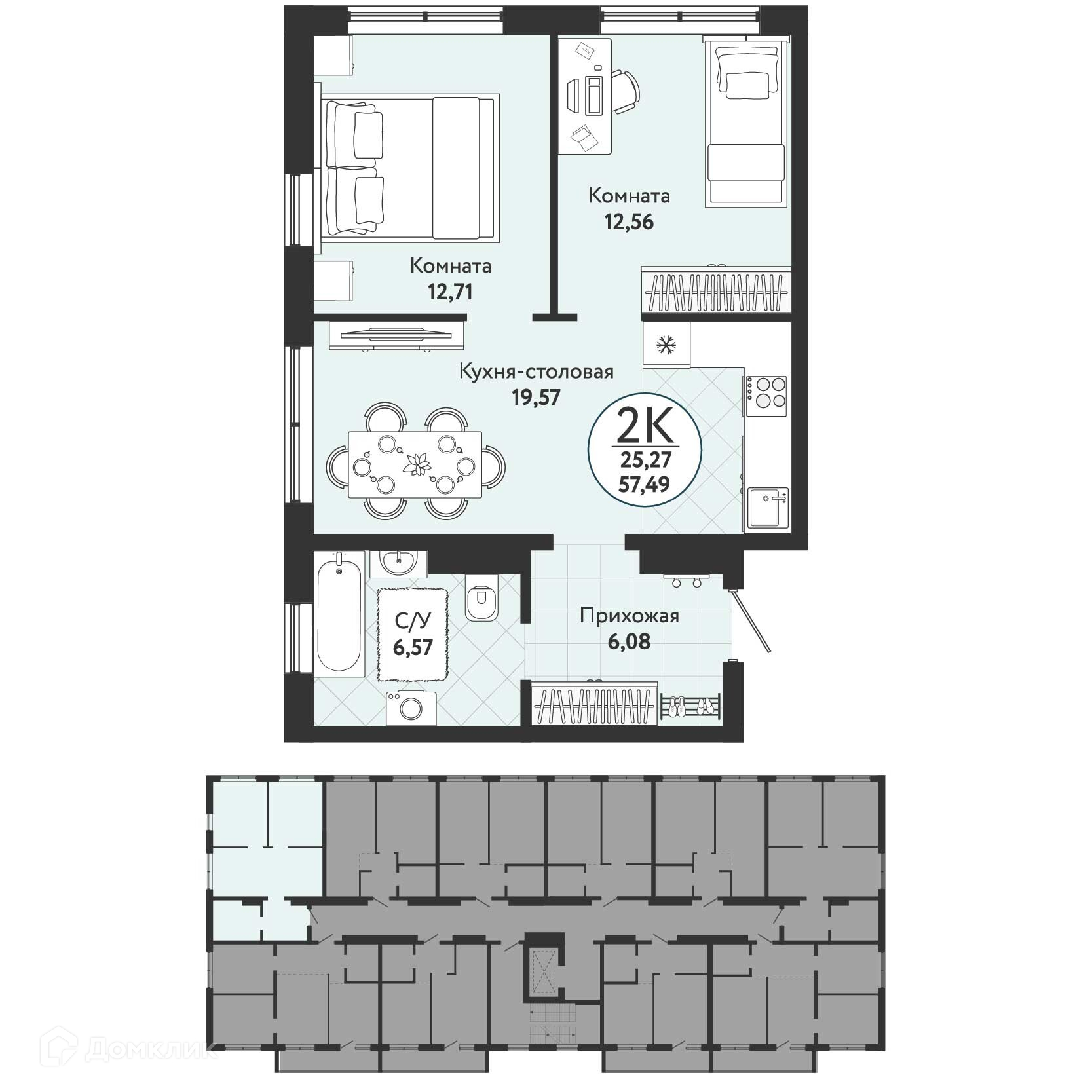 • Площадь - 57.49 м²