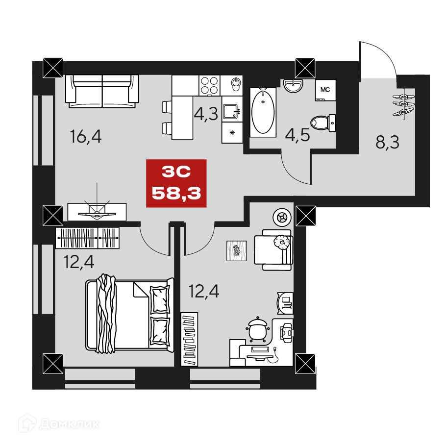 - 🌞 Большие окна наполняют помещения естественным светом.