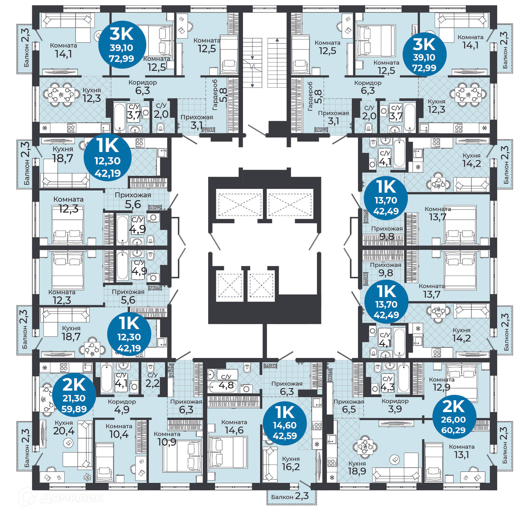 Площади квартир