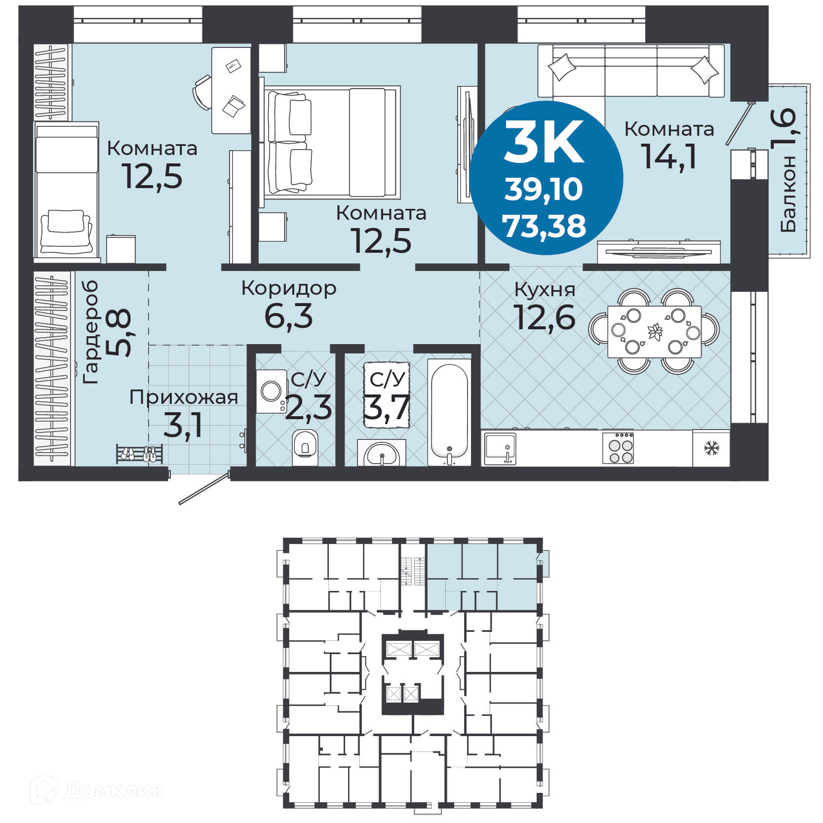 ✅ Кухня: 12.6 м² — идеальна для семейных ужинов.