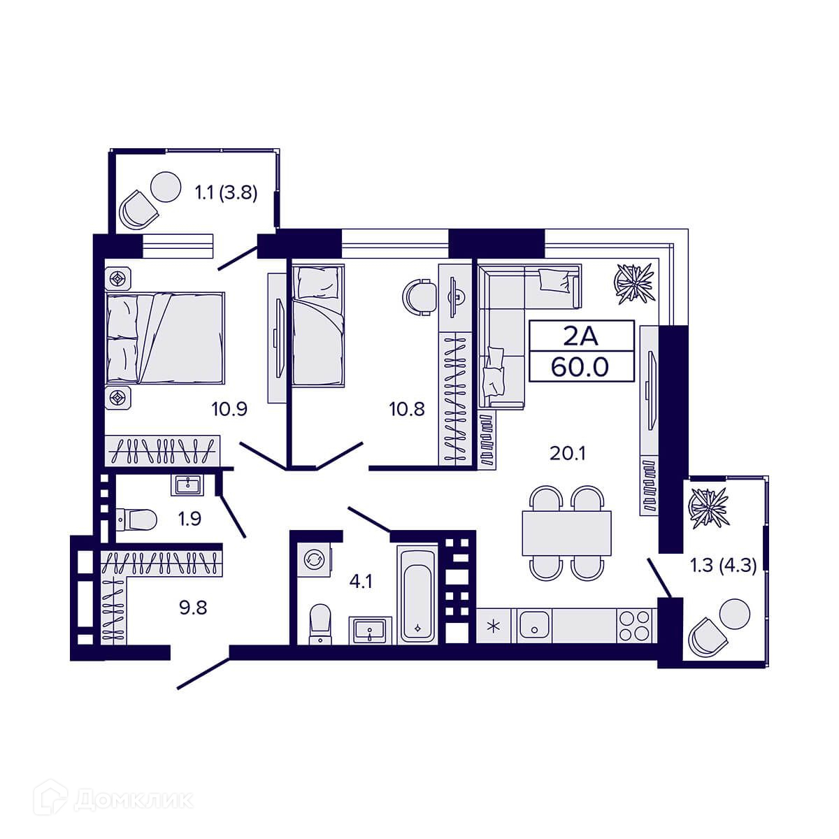 Площади квартир