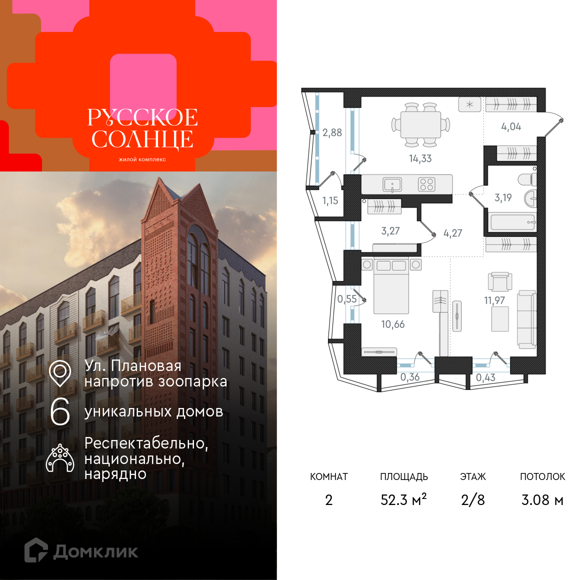 Предлагается 2-комнатная квартира в новом жилом комплексе "ЖК Русское солнце" 🏢. Квартира расположена на 2-м этаже 18-этажного дома. Отличный вариант для комфортной жизни.