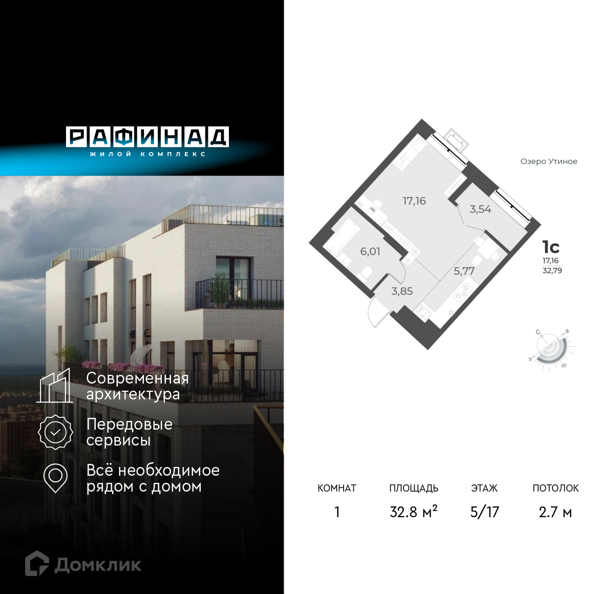 • Площадь - 32.8 м²