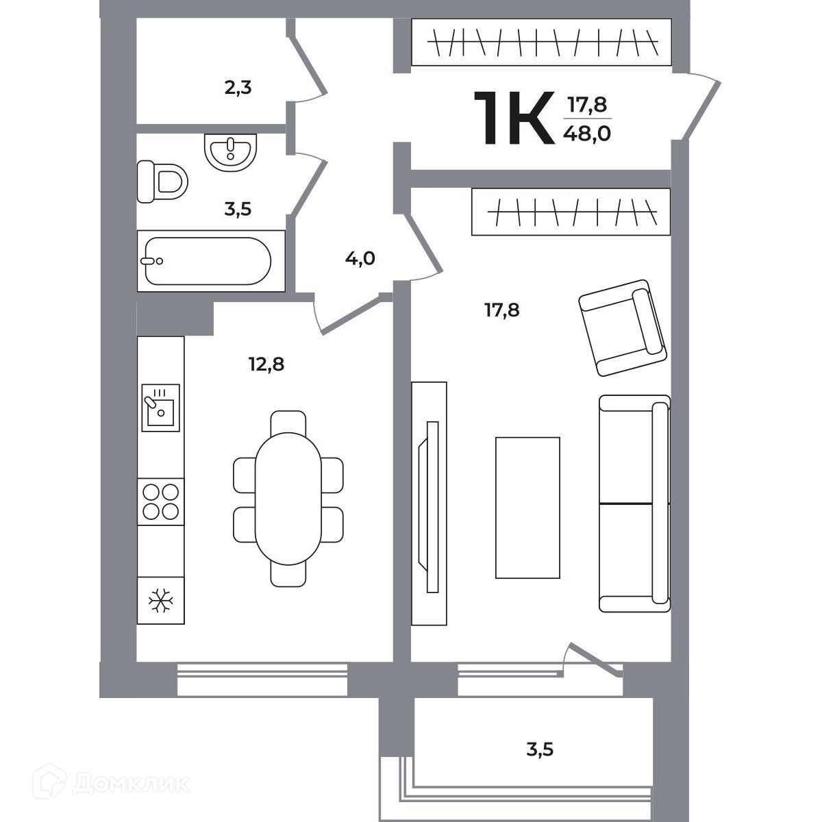 Планировка 1 комн. в ЖК Сергиев Пассаж на Беловежской