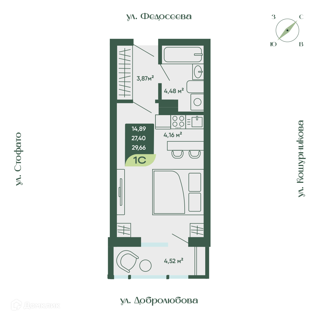 Планировка 1 комн. в ЖК Жилой дом Мичурин