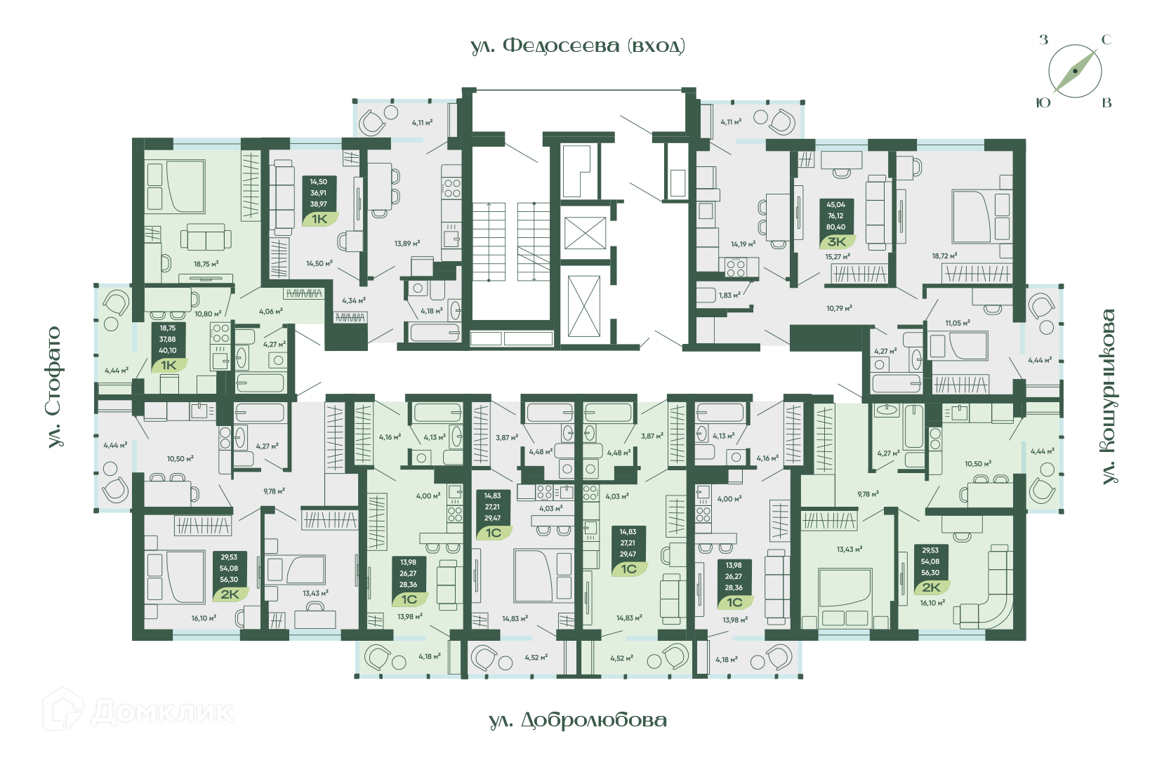 Площади квартир