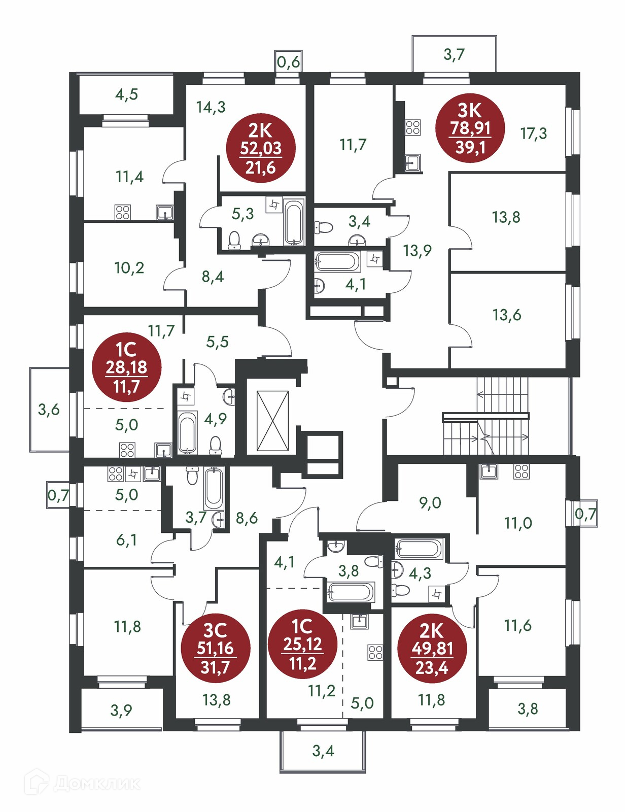 Площади квартир