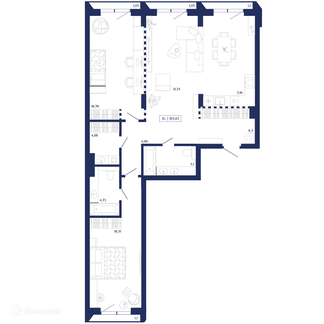 Площади квартир