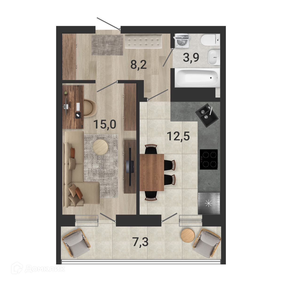 - ✅ Просторная жилая площадь: 14.3 м².