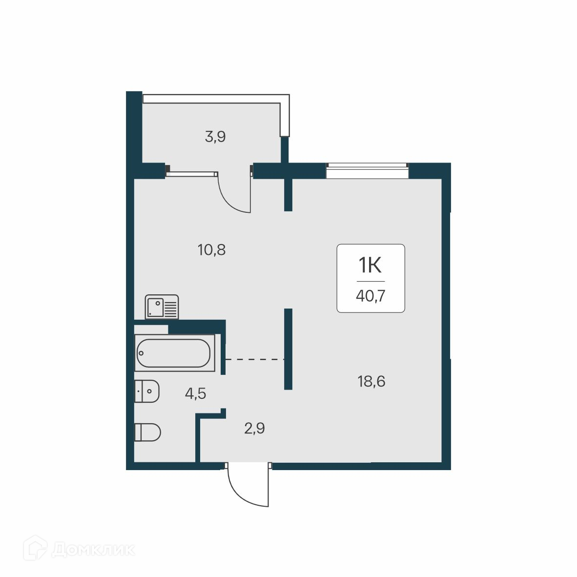 Планировка 1 комн. в ЖК Квартал на Игарской