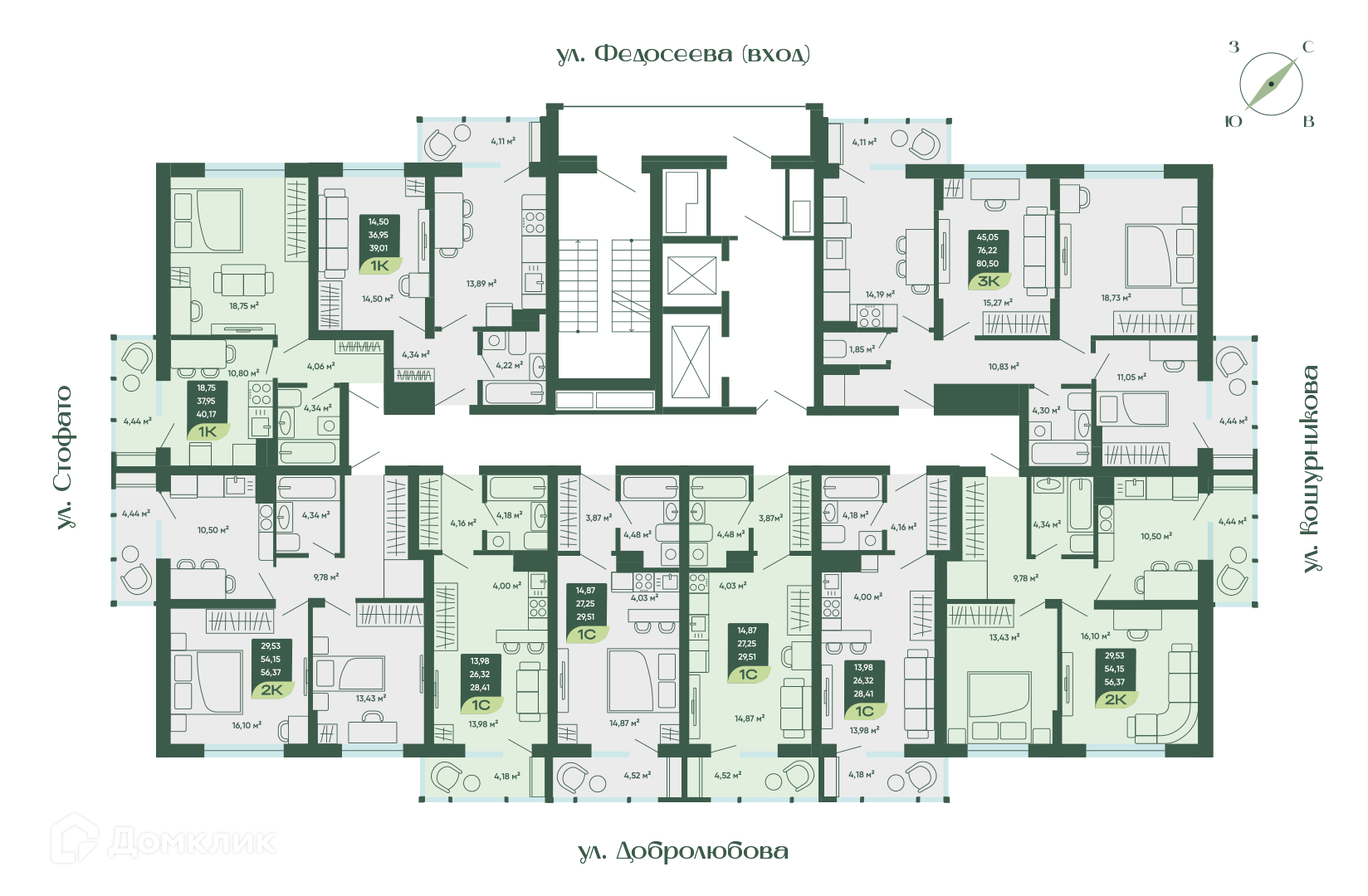 Площади квартир