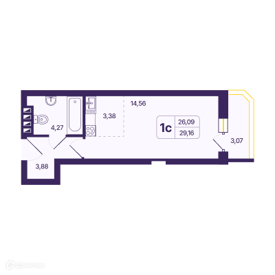 Планировка 2 комн. в ЖК Астон. Шесть звезд