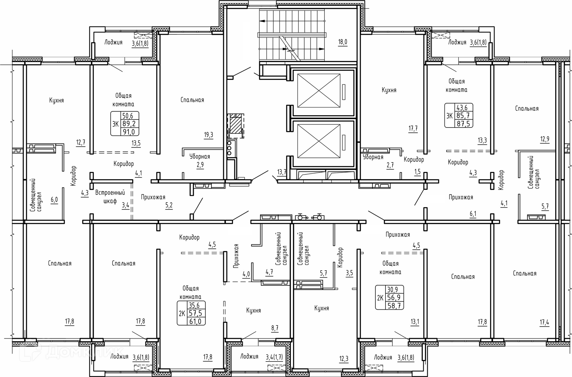 Площади квартир