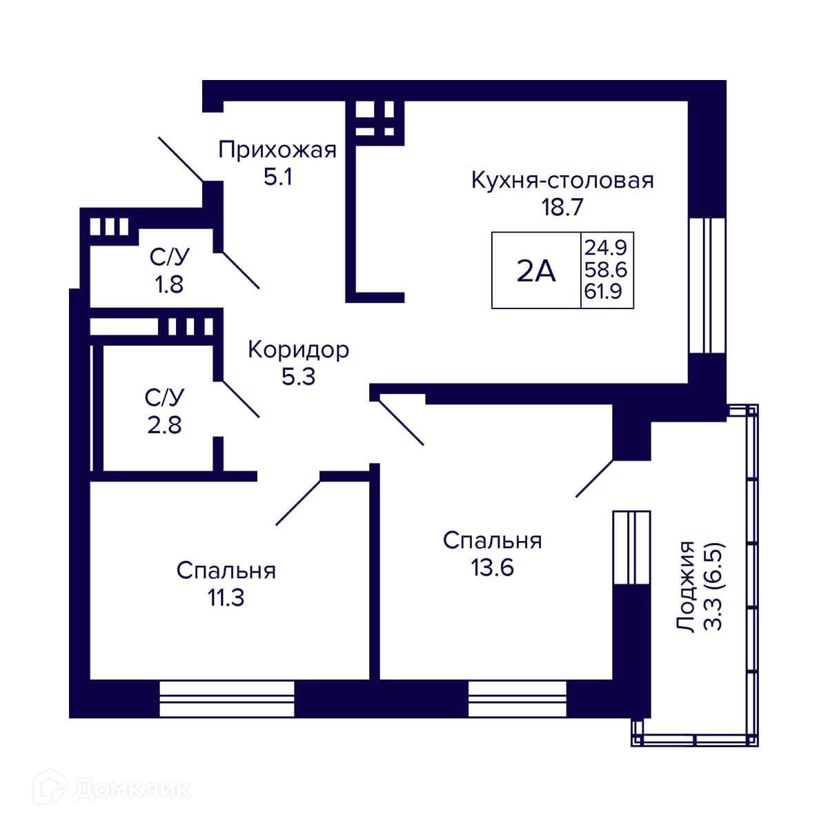 • Площадь - 61.9 м²