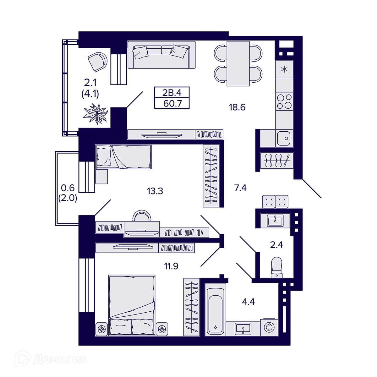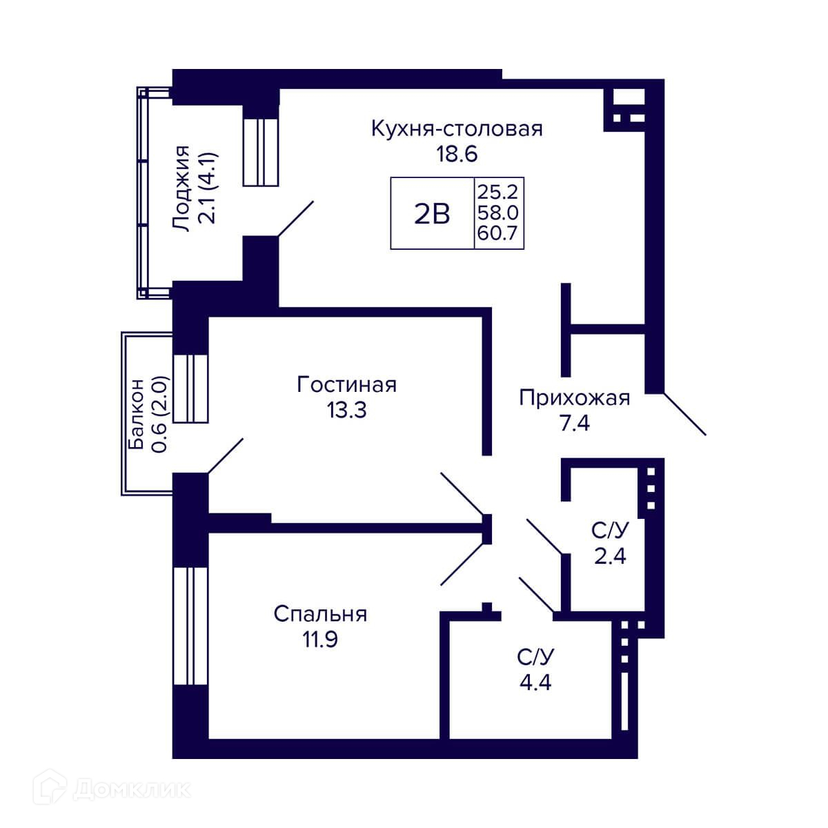 ✅ Кухня: 18.6 м² — место для кулинарных шедевров.