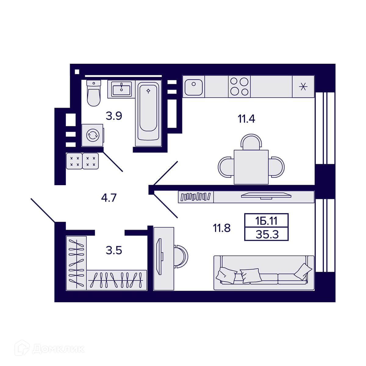 ✅ Кухня: 11.4 м² — идеальна для семейных ужинов.