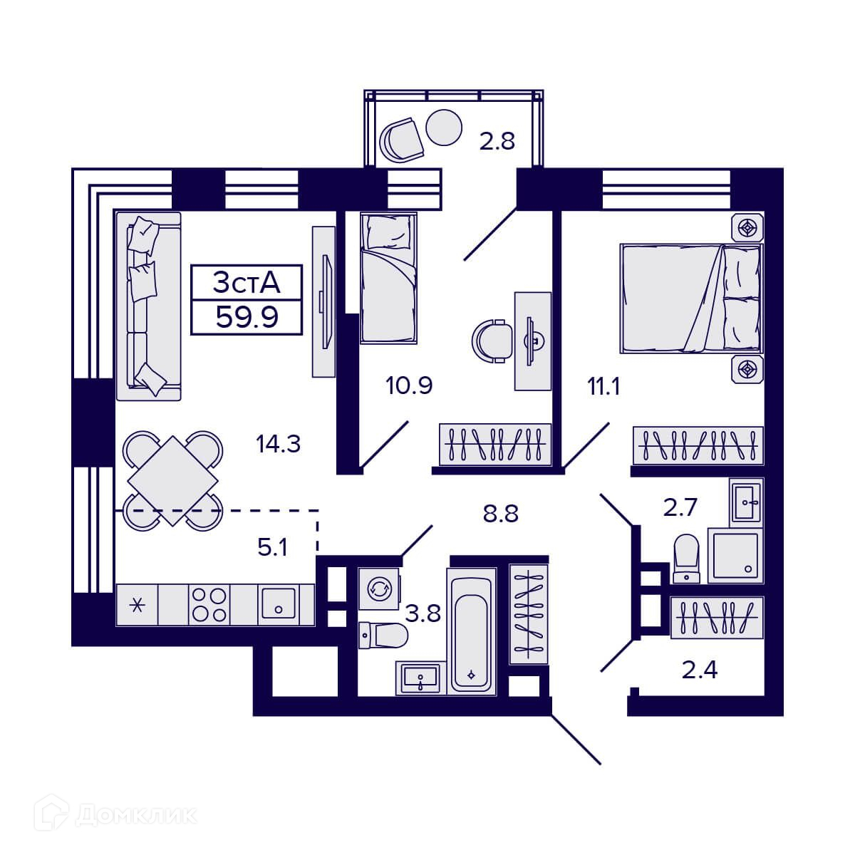 Планировка 3 комн. в ЖК Citatum (Цитатум)