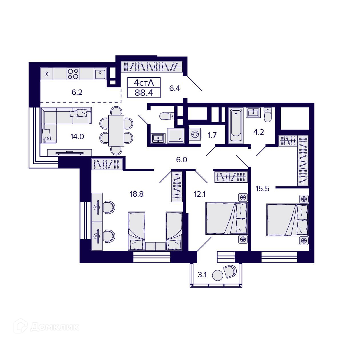 Площади квартир