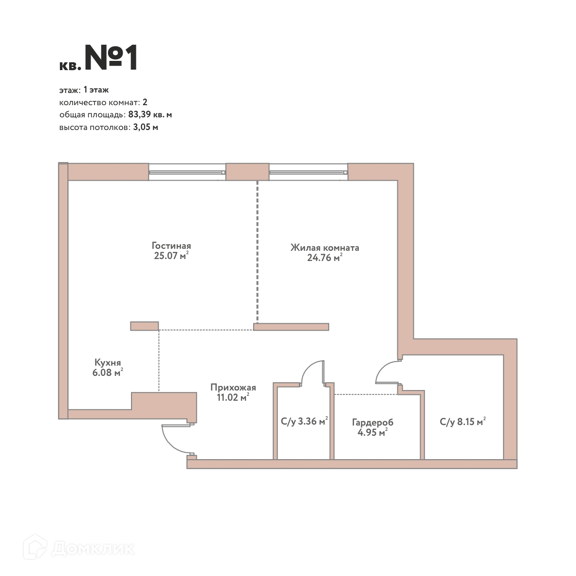 - ✅ Общая площадь: 83.39 м².