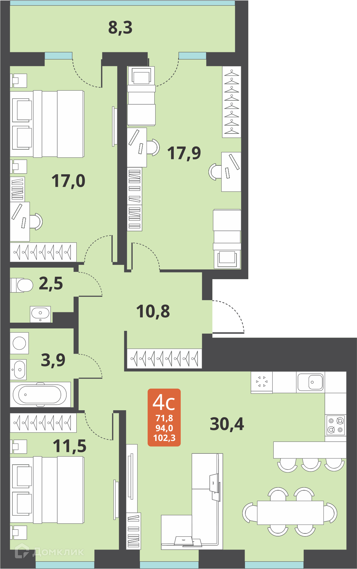 Предлагается 4-комнатная квартира в востребованном жилом комплексе "ЖК Тайгинский парк" 🏢. Квартира расположена на 1-м этаже 18-этажного дома. Отличный вариант для комфортной жизни.