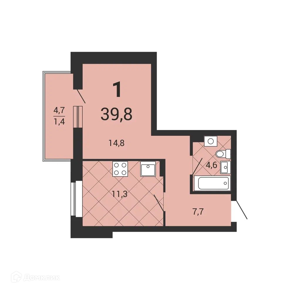 • Площадь - 39.8 м²