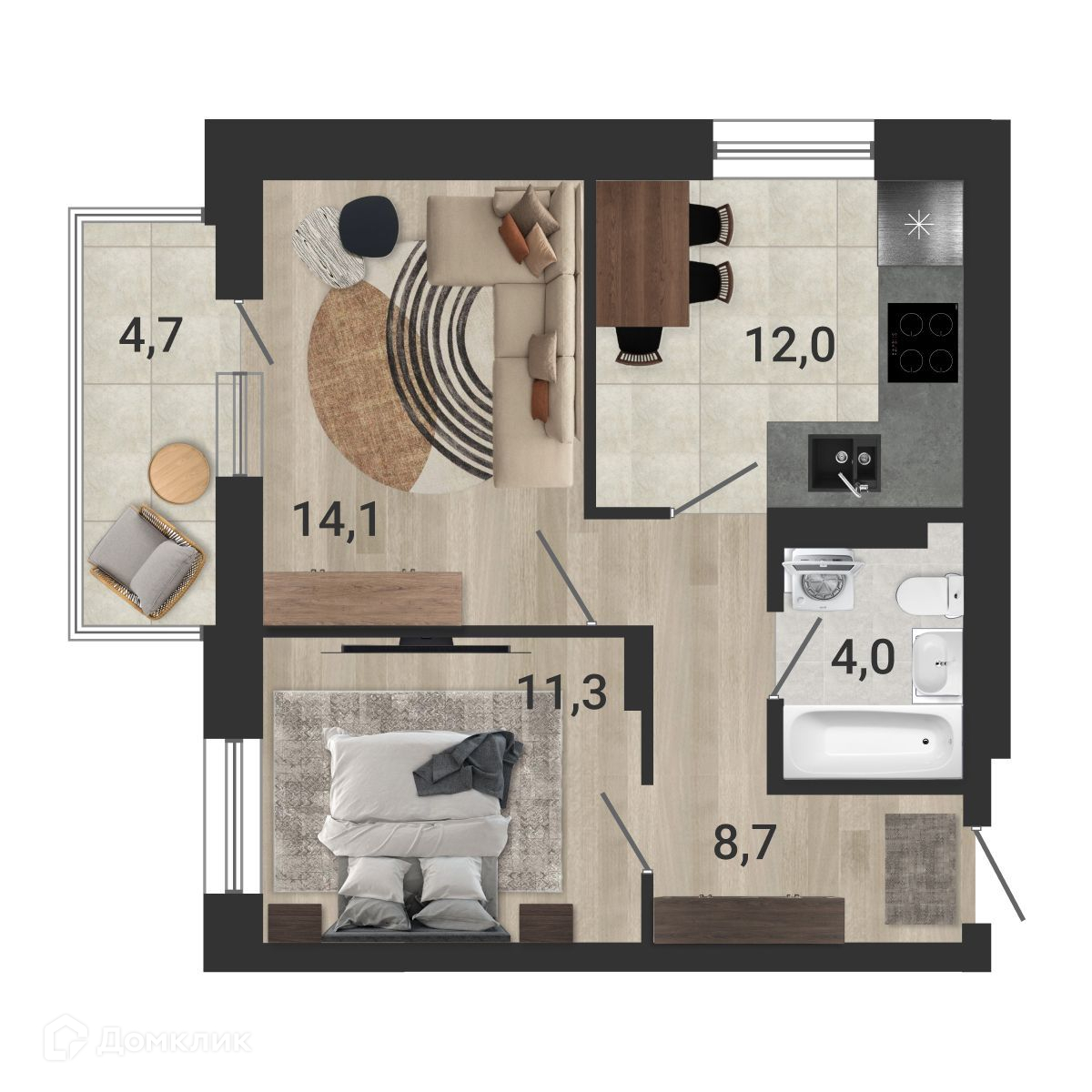✅ Кухня: 11.3 м² — эргономичное пространство.