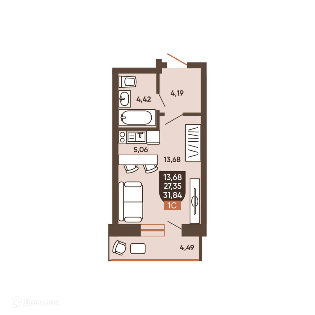 • Площадь - 31.84 м²